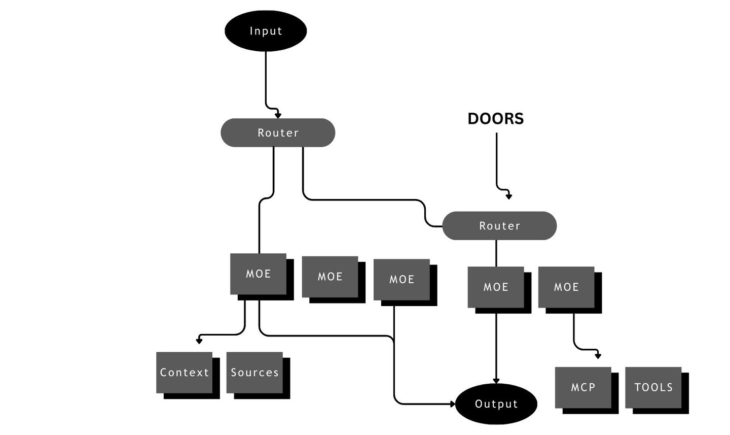 The router is the manager. It decides which Doors are needed for the current task. The router can be simple at first and more intelligent later.